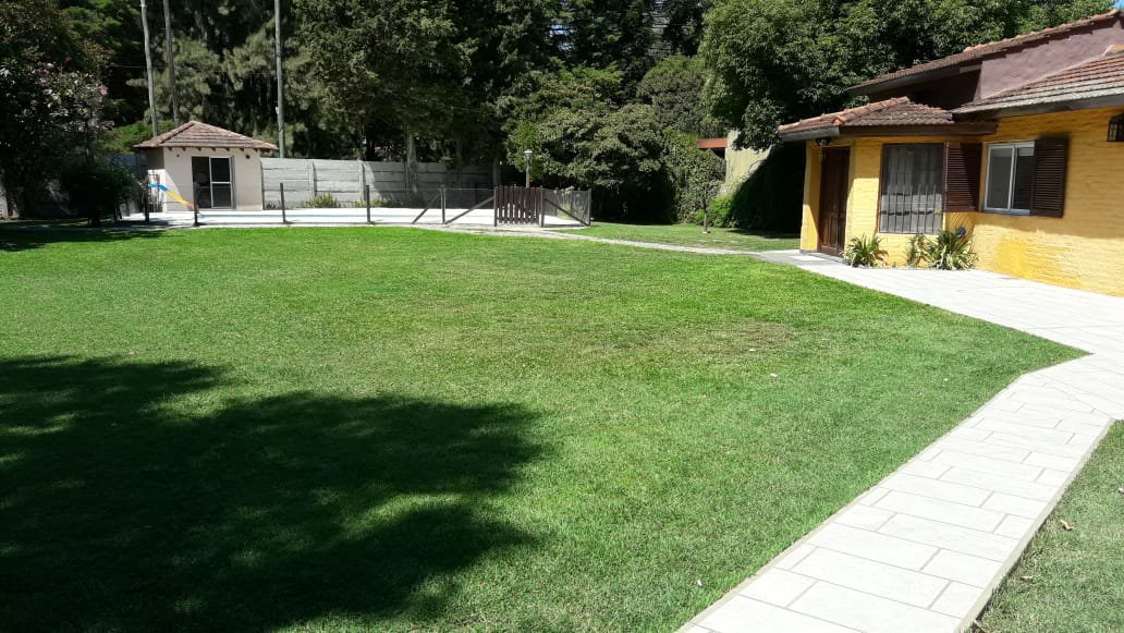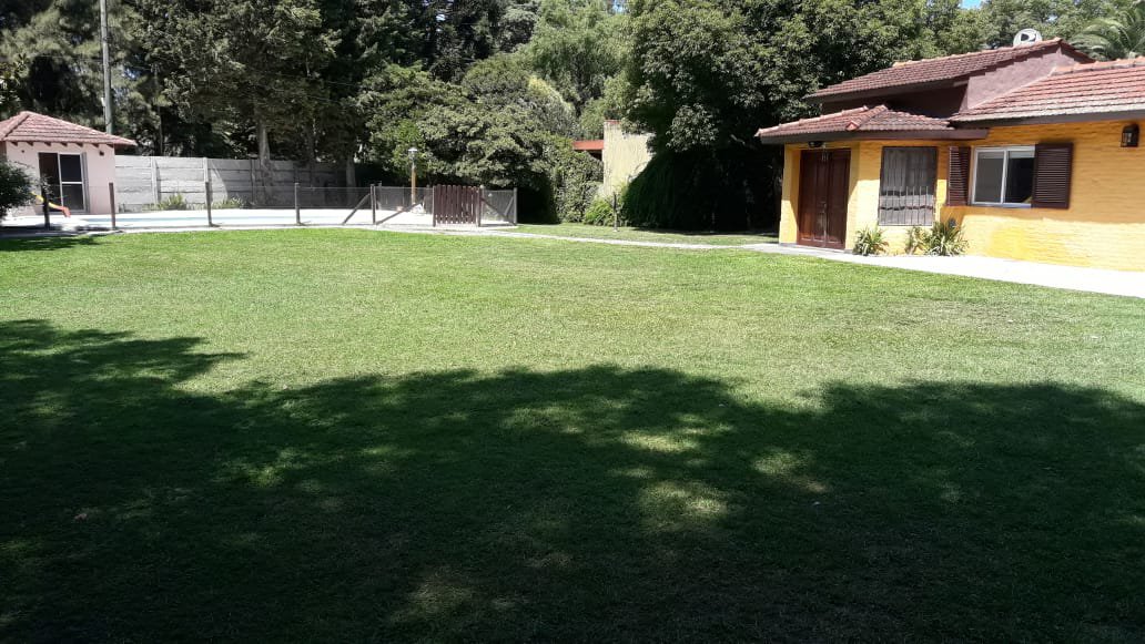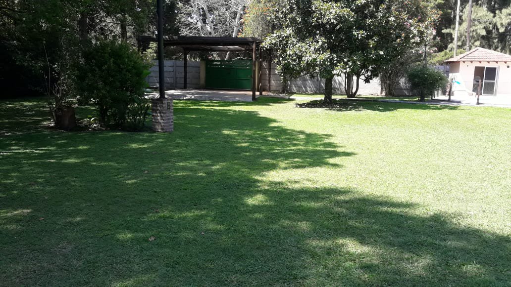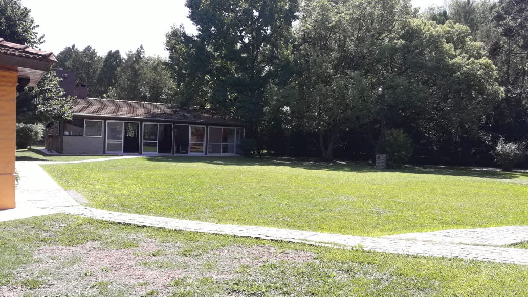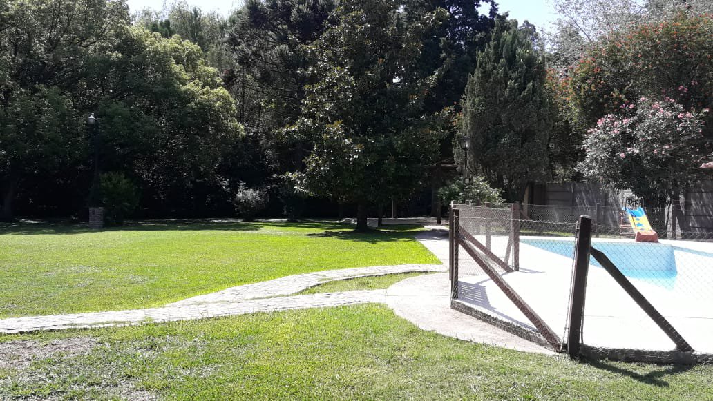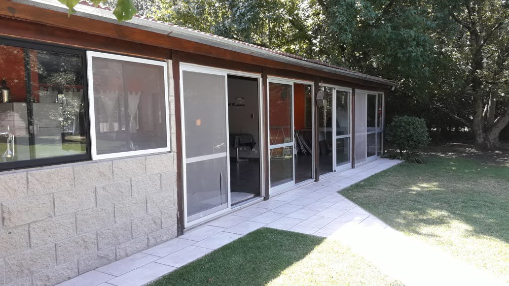 La casa quinta se encuentra en muy buenas condiciones, pareredon perimetral frente, porton electrico, ventanales en madera maciza,techo a dos aguas de teja españolas,techo revestido en madera, el parque con sistema de iluminacion,quincho amplio. seguridad las 24 horas.