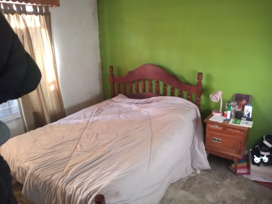 Techo de chapa, con revestimiento de madera, con el interior pisos de ceramica, cocina con mesada de marmol, bajo mesada y alacenas en algarrobo , con escuelas cercanas y linea de colectivo.