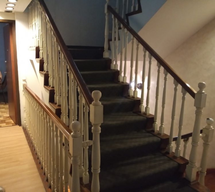PRIMER PISO: Se accede a traves de escalera en madera de cedro, alfombrada y completamente tallada: