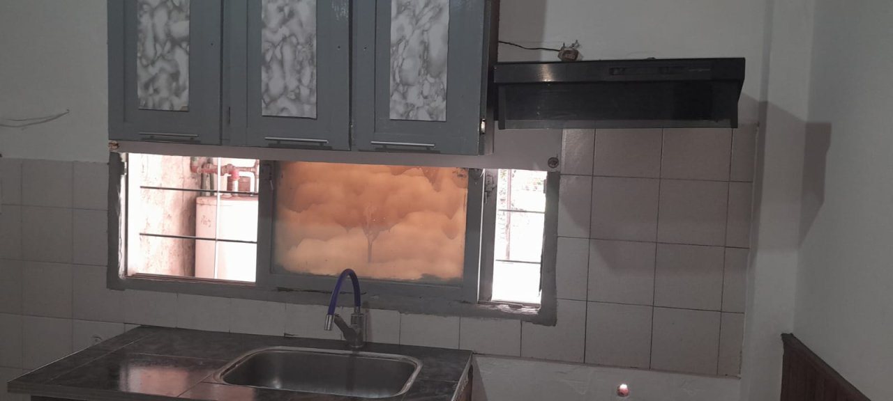 cocina bajo mesada , extractor y alacena .