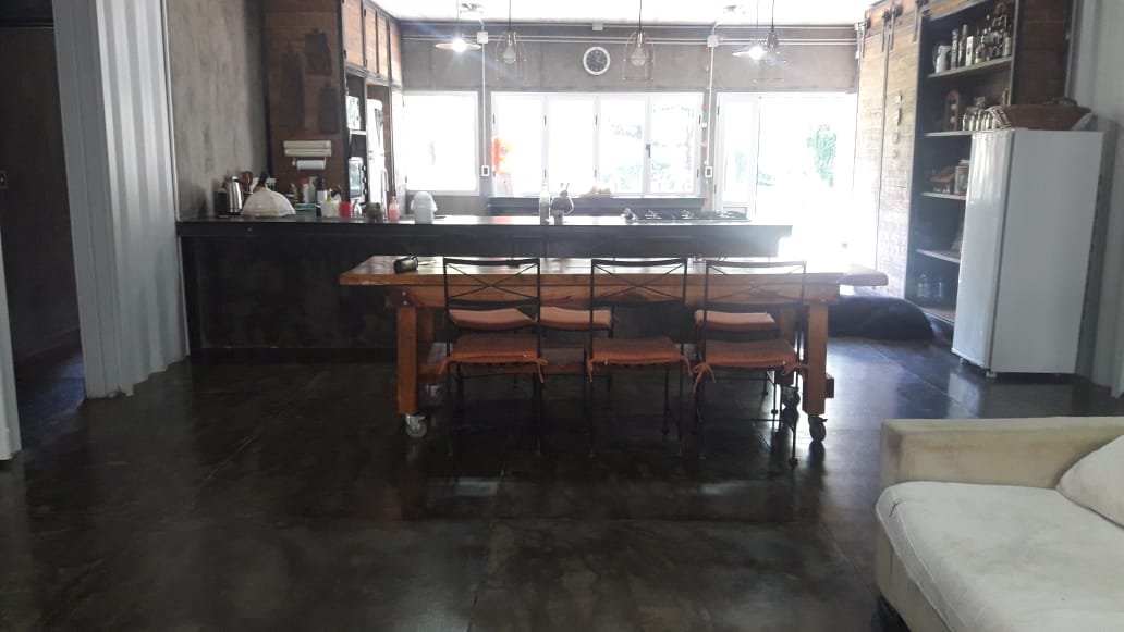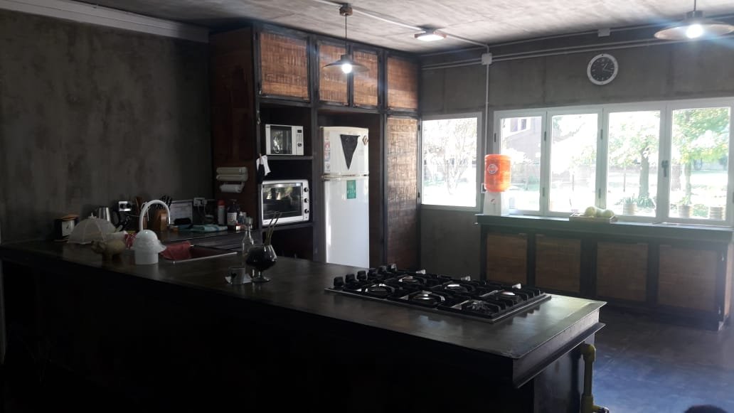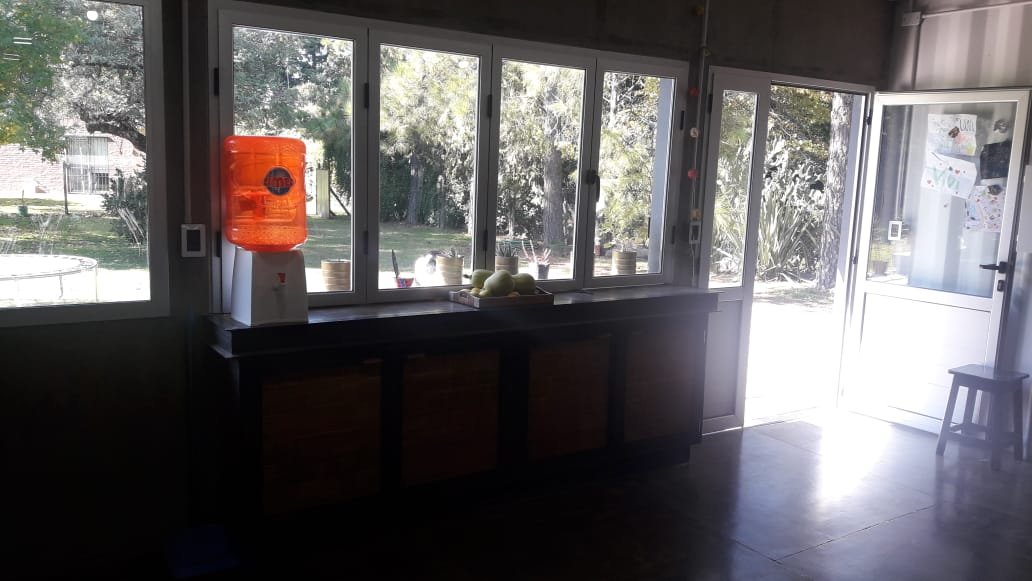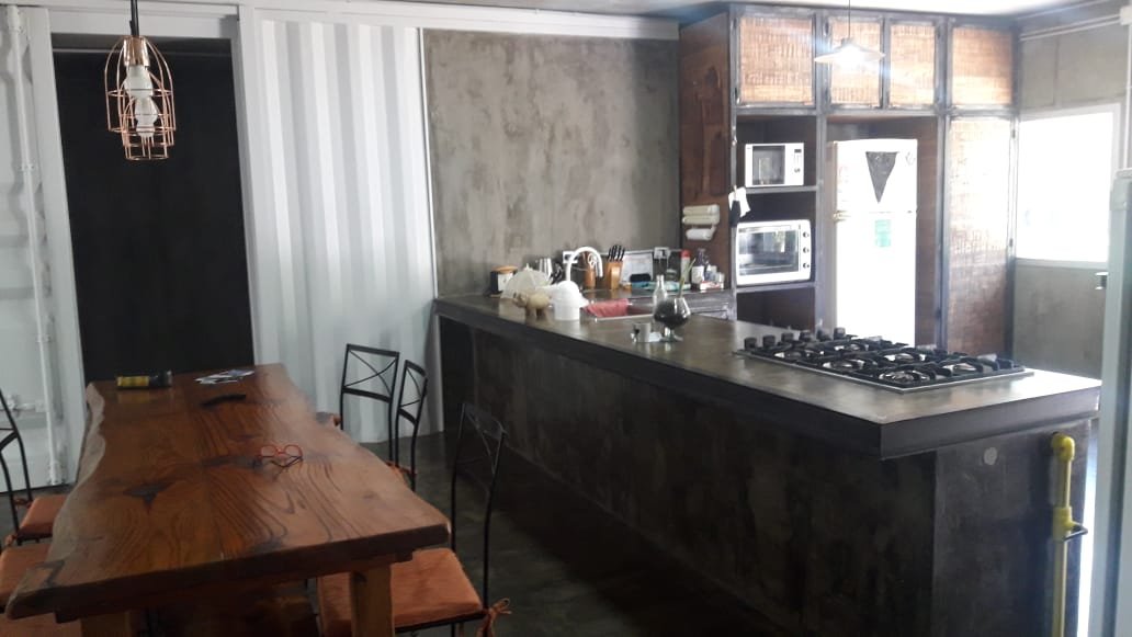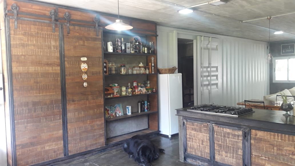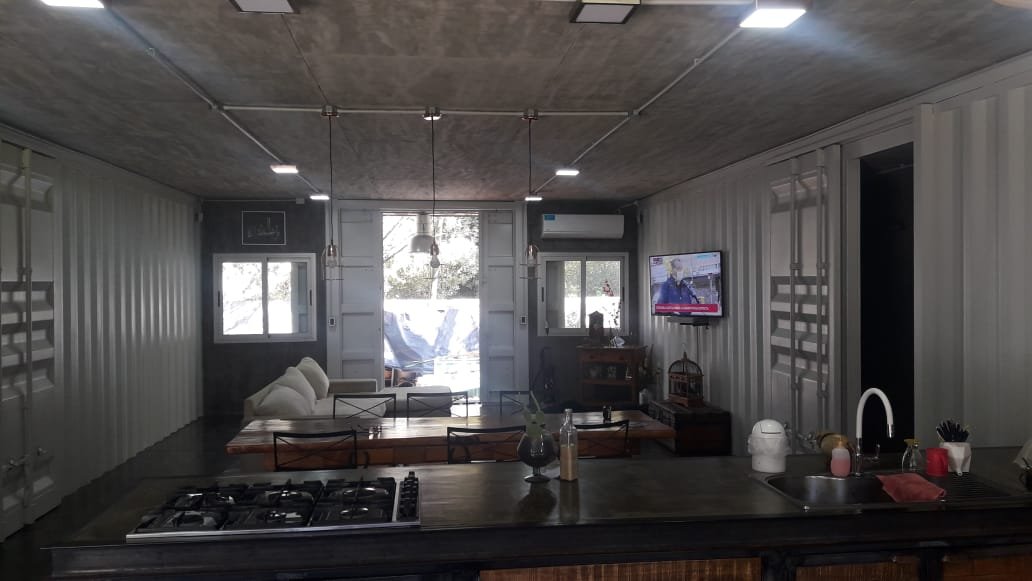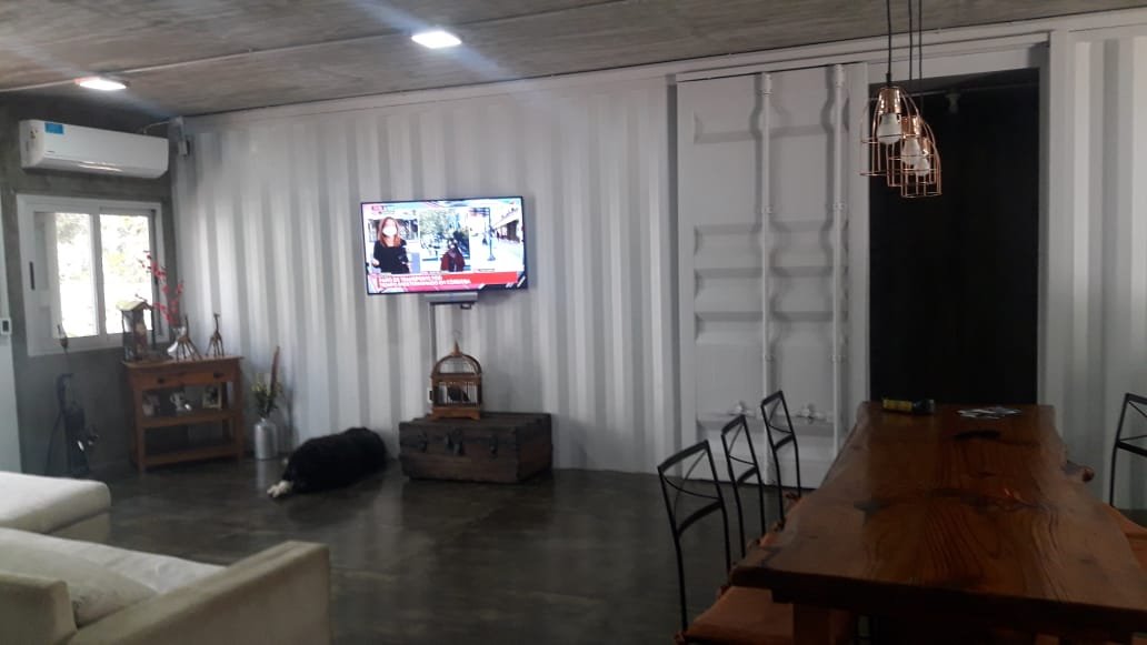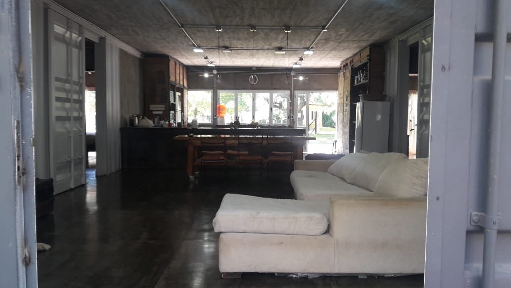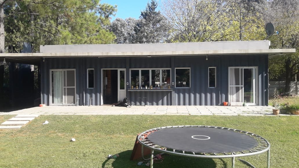 Servicio : Luz - Gas natural - Agua de pozo - Internet Descripcion : Casa construida con dos container 40 HC aislado termicamente unidos por construcion tipo steel frame sobre pilotes de hormigon de una altura de 60 cm estilo industrial . Consta de dos dormitorios de 5x3 mts cada uno , una con un baño compartido de 2x1,80 , un dormitorio de servicio 3x3 , baño completo de 1,20x2 mts . Un dormitorio principal de 3x4 con vestidor 2x2 y baño en suit de 1,70x2 .