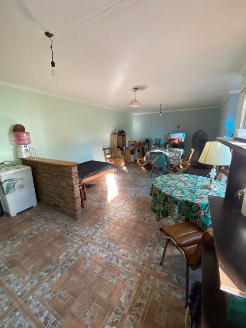 Descripcion : excelente ubicacion a 150 mts de la ruta 205 , centro comercial , escuelas y centro de salud , la propiedad se encuentra en estado general bueno , desarrollado en una planta , consta con la casa principal y un departamento . Dormitorio principal , aire frio/calor , placar empotrado , amplio ventanal dejando ingresar la luz natural , cocina completa , barra desayunadora , en el comedor se encuentra un hogar a gas natural .
