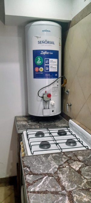 Servicios : Luz - Agua corriente - Cloaca - Gas natural Descripcion : Excelente departamento , luminoso , de amplios ambientes , con ventanas dejando ingresar la luz natural en cada uno de los ambientes , un dormitorio con placard empotrado amplio y balcon , cocina con termotanque a gas natural , muebles de cocina , mesada , bajo mesada , barra , cocina de cuatro hornallas , cajonera ; a 70 mts de la calle principal de Tristan Suarez , estacion de tren y lineas de transporte , servico de salud y esculas cercanas . El departamento cuenta con cochera No incluida en el canon locativo