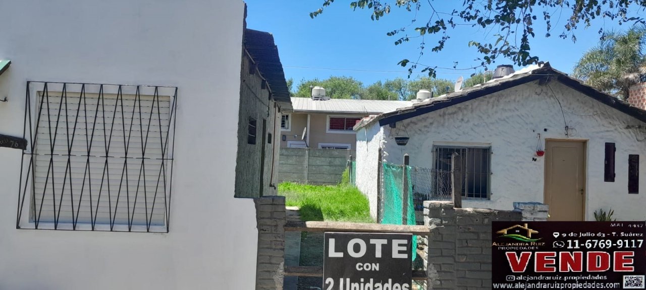 Servicios : Luz - Agua Corriente - Cloaca Descripcion : Oportunidad de inversion lote con dos unidades para vivienda directa , sobre una superficie de 228 m2 aproximado , sobre calle asfaltada , a una cuadra de la ruta 205 , a cinco cuadras del centro de Tristan Suarez y cuatro del shopping Los Nogales ; ambas propiedades cuentan con su ingreso independiente .
